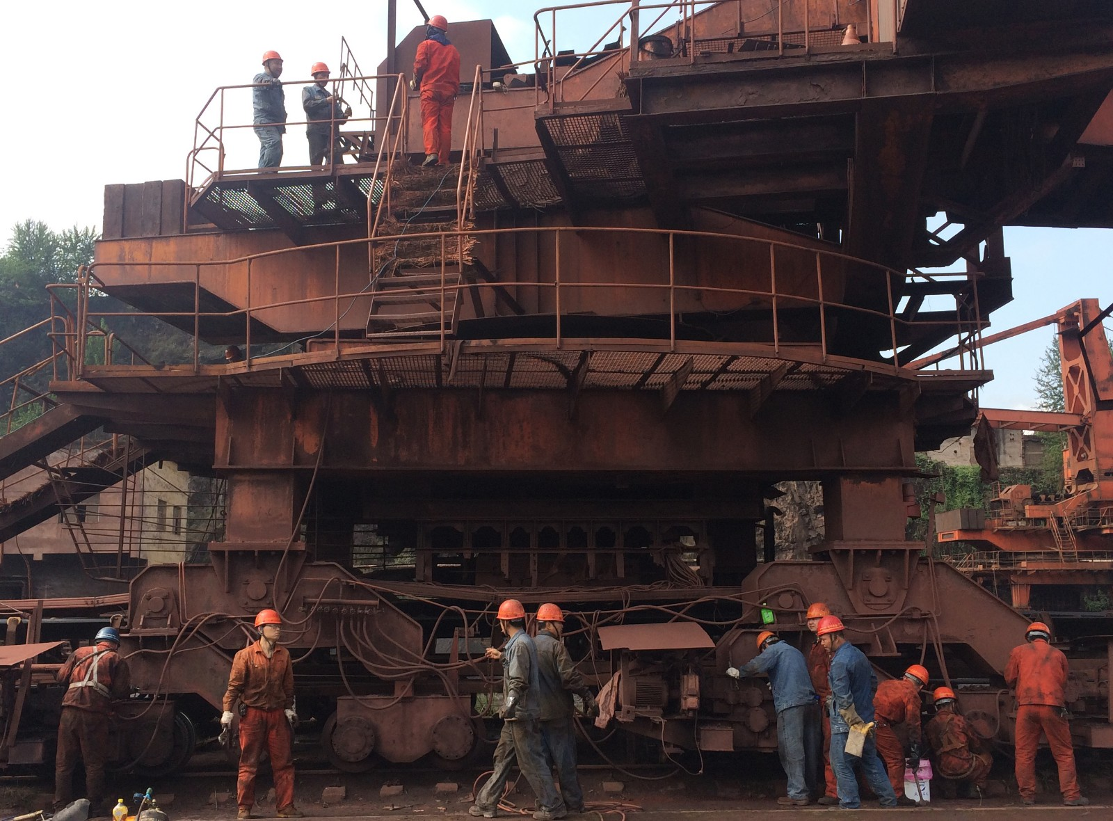 棒线检修现场铁路干线大修现场水钢维检中心主要承担水钢各种大型生产设备的维护和检修任务,是水钢精心打造的一支专业维检队伍,现有8个车间,2个科室。