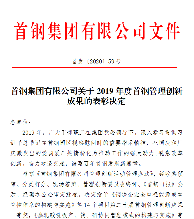水钢多项管理创新成果在北京市和首钢获奖 | (2020-03-30 00) |