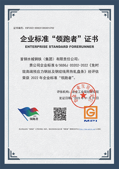 水钢精品获2022年全国企业标准“领跑者” | (2023-02-14 09) |